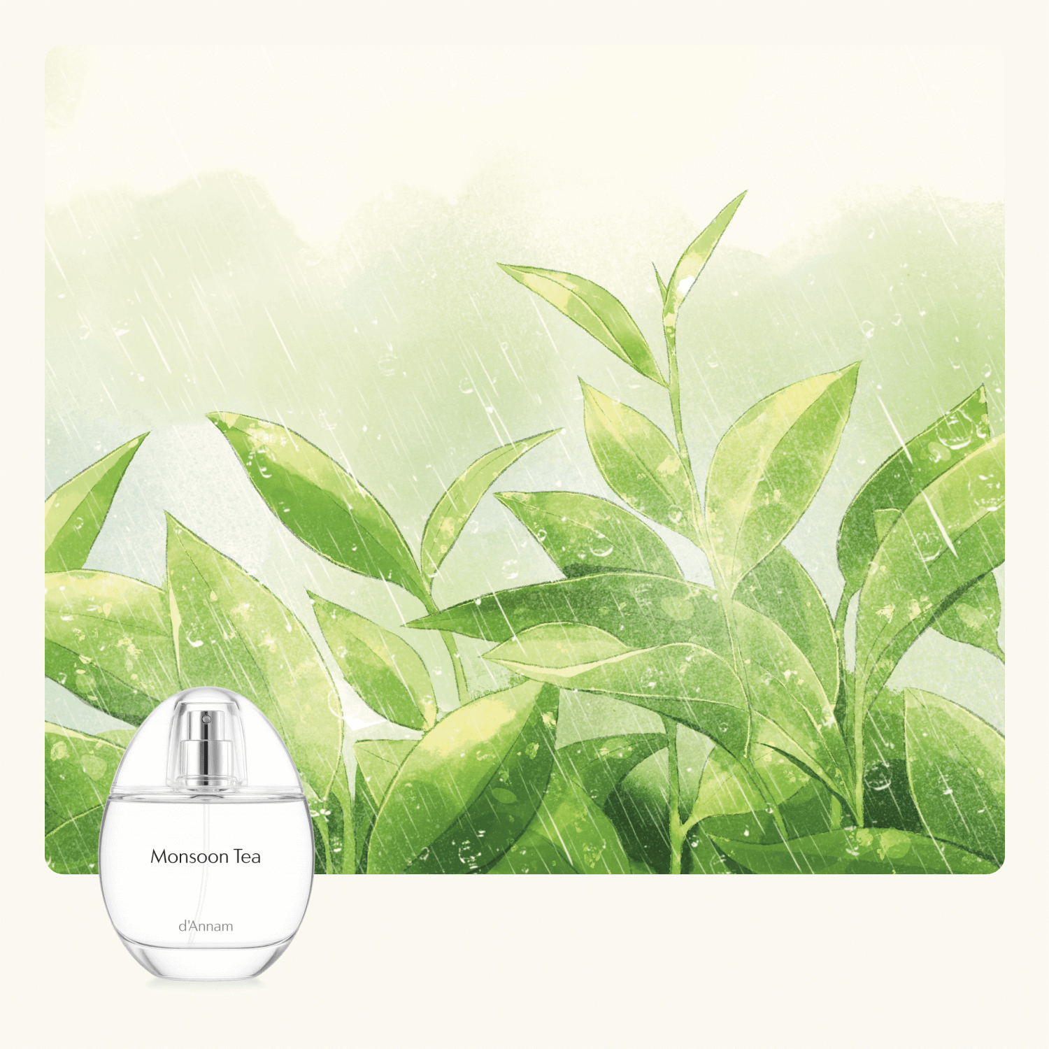 Monsoon Tea captures the tranquil moment of savoring Vietnamese green tea after a rainstorm. Brewed with fresh tea leaves, this traditional drink is light, bright, and refreshing. As the rain subsides, every spray of Monsoon Tea is a sip of optimism, clarity, and renewal.